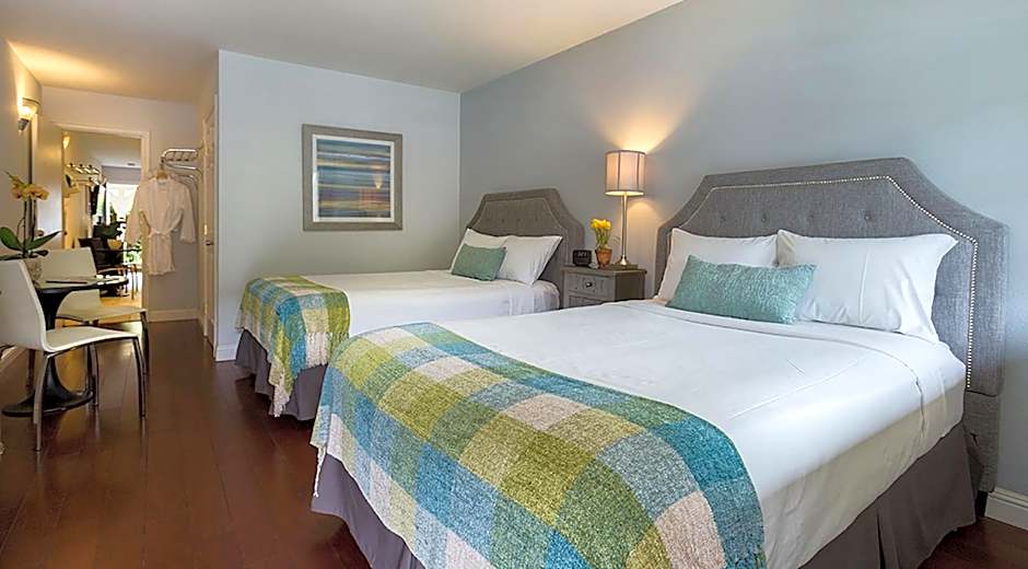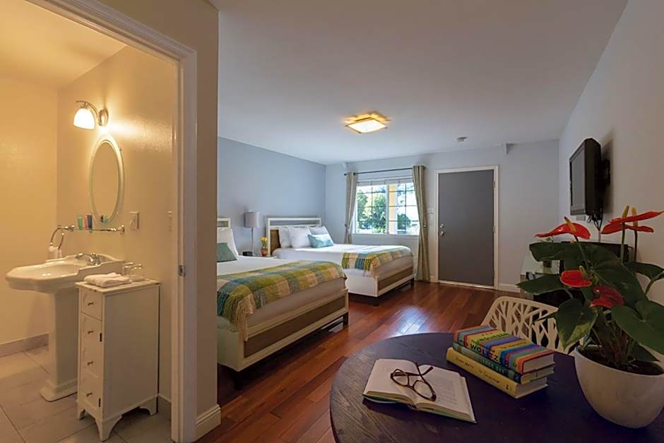 This suite has a fully equipped gourmet kitchen, tile/marble floor, a microwave oven, and cable TV.