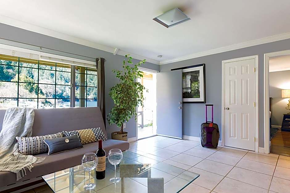 This room has a private entrance, a microwave oven, coffee-making facilities, a small refrigerator, and a seating area.