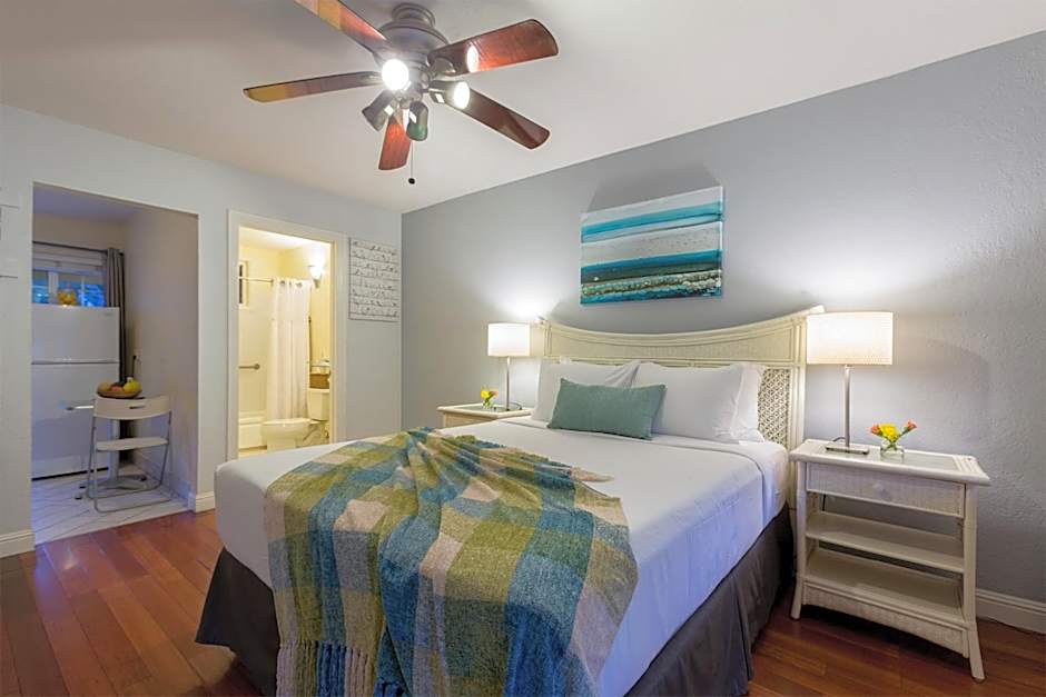 This single room features a small refrigerator. a microwave oven, and coffee-making facilities. A lake view is also featured as is hardwood flooring.